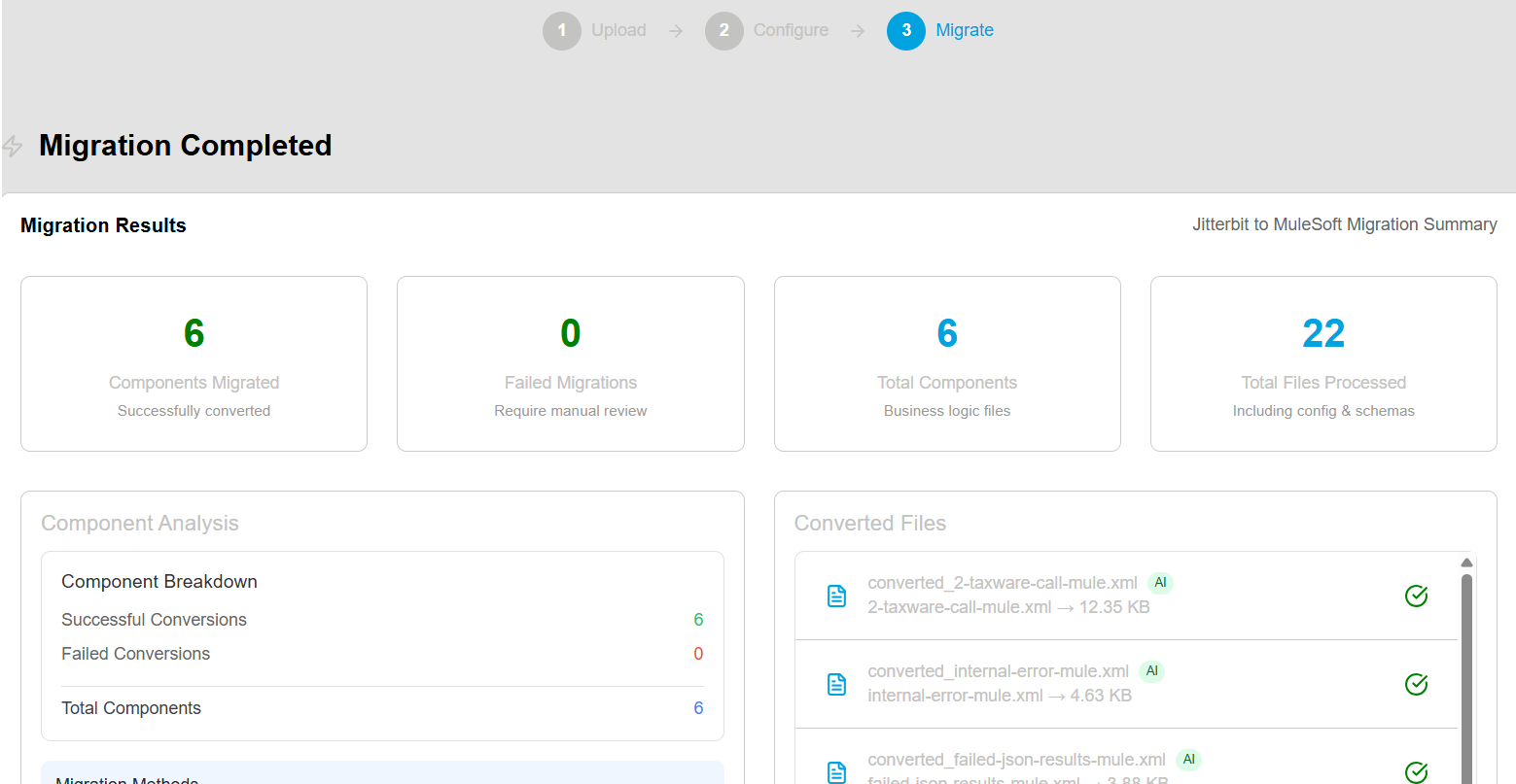 Migrations carry real risk. Business-critical workflows, years of logic, and operational trust are on the line. The Migration Agent safely migrates legacy platforms to MuleSoft without losing business logic.